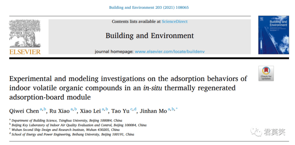 2021年6月23日,《Building and Environment》杂志刊登了课题组博士生陈其威的最新成果:Experimental and modeling investigations on the adsorption behaviors of indoor volatile organic compounds in an in-situ thermally regenerated adsorption-board module (2021, 203: 108065). https://doi.org/10.1016/j.buildenv.2021.108065.