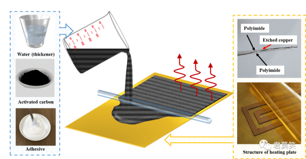 如图2所示,通过将去离子水、羧甲基纤维素(CMC)、活性炭和EVA乳液按一定比例混合,搅拌后将均一的分散液负载在柔性电热膜表面并烘干制成柔性吸附薄层。然后一方面将制备的吸附薄层剥离并填充在吸附管中测试其吸附动力学参数(K,D);另一方面对吸附薄层模块性能进行实验测试,得到对VOCs的吸附穿透曲线。通过与模型计算的穿透曲线对比,验证所建立模型的可靠性。