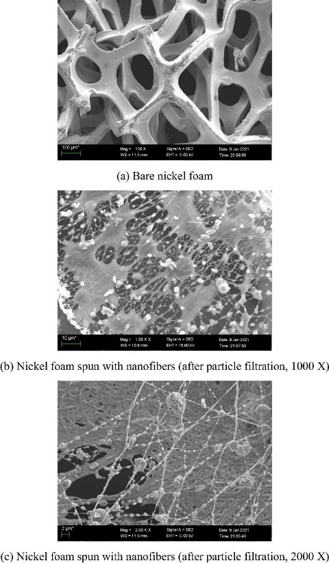 图3. 泡沫金属-纳米纤维积尘微观结构图