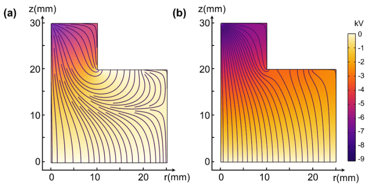 实验与模拟效率吻合较好,平均和最大偏差分别为1.9%和3.7%。增加诱导极板可以显著提高采样效率,在−6kV电压下,采样效率从35%提高到90%,−9kV电压下,采样效率可达到99%以上。
