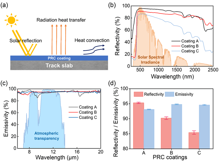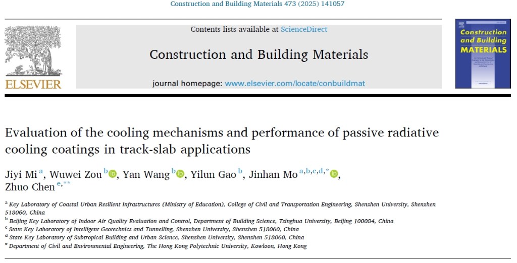 Mi, J., Zou, W., Wang, Y., Gao, Y., Mo, J., Chen, Z., Evaluation of the cooling mechanisms and performance of passive radiative cooling coatings in track-slab applications. Construction and Building Materials, 2025, 473: 141057.