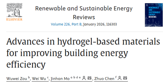 Zou, W., Wu, W., Mo, J., & Chen, Z., Advances in hydrogel-based materials for improving building energy efficiency. Renewable and Sustainable Energy Reviews, 2026, 226, 116303. (IF: 16.3)
