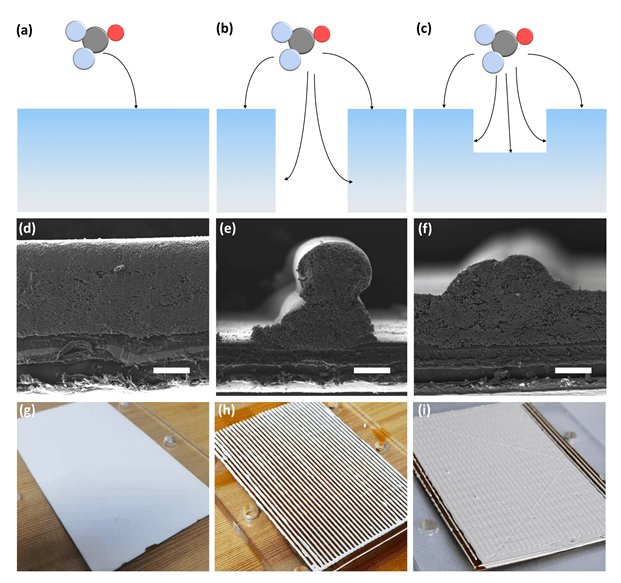 室内气态污染物(VOCs)主要由建材、涂料、家具等散发,其低浓度、多组分和长期缓慢释放的特性对人体健康造成了持续的慢性危害。对于住宅,写字楼,酒店等通风受限的环境,吸附净化是去除VOCs主要的方法。然而现有吸附净化模块寿命有限,吸附容量较低,性能衰减快。我们前期研究中提出了一种原位热再生的薄层吸附模块(Chen et al., Indoor Air, 2019, 29: 469-476) ,可以有效拓展吸附材料使用寿命,并显著降低风阻。然而现有吸附薄层内传质速率依然受限,污染物在吸附材料内部的扩散迁移较慢。我们后续研究通过激光蚀刻宏观通道的方法强化传质过程(Chen et al., Environmental Research, 2021, 192: 110218),可以提升污染物在吸附薄层中的扩散传质速率,并提升吸附量。但该方法制约了吸附薄层界面形貌的灵活设计;人工制备吸附薄层费时费力且精度有限。